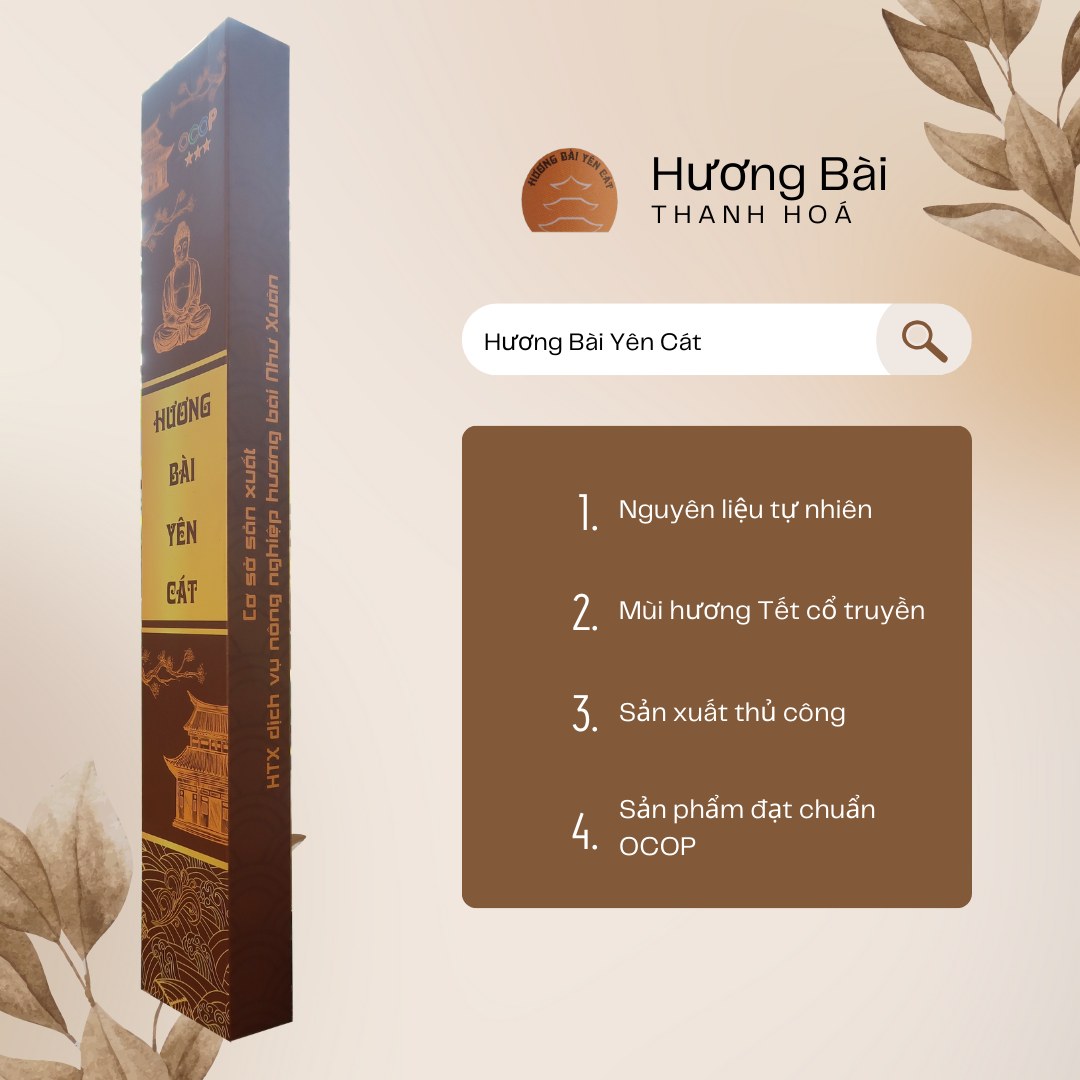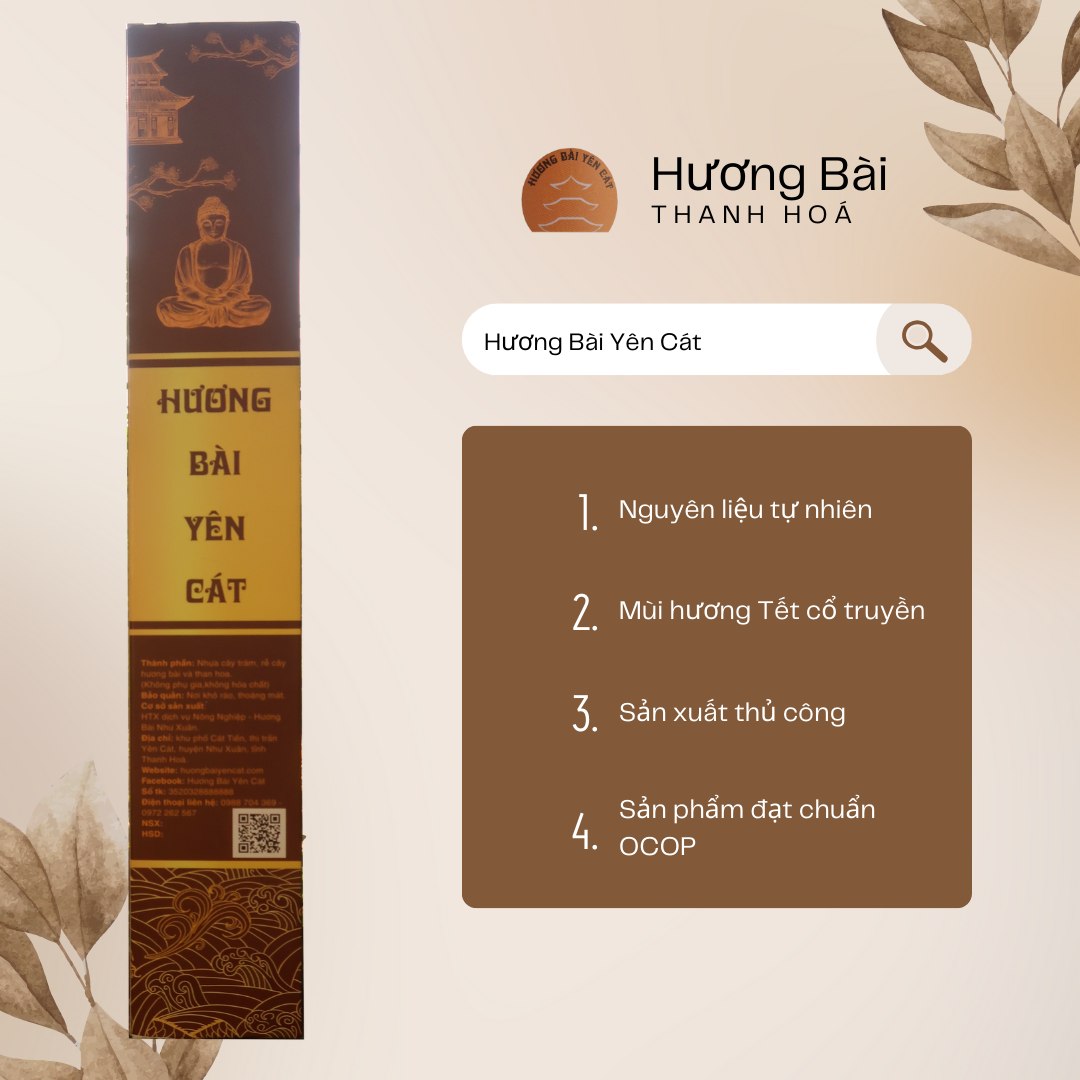 Hương Bài Yên Cát là sản phẩm gia truyền nhiều đời tại Làng Trầu (kp Cát Tiến), tt Yên Cát, huyện Như Xuân, Thanh Hóa.