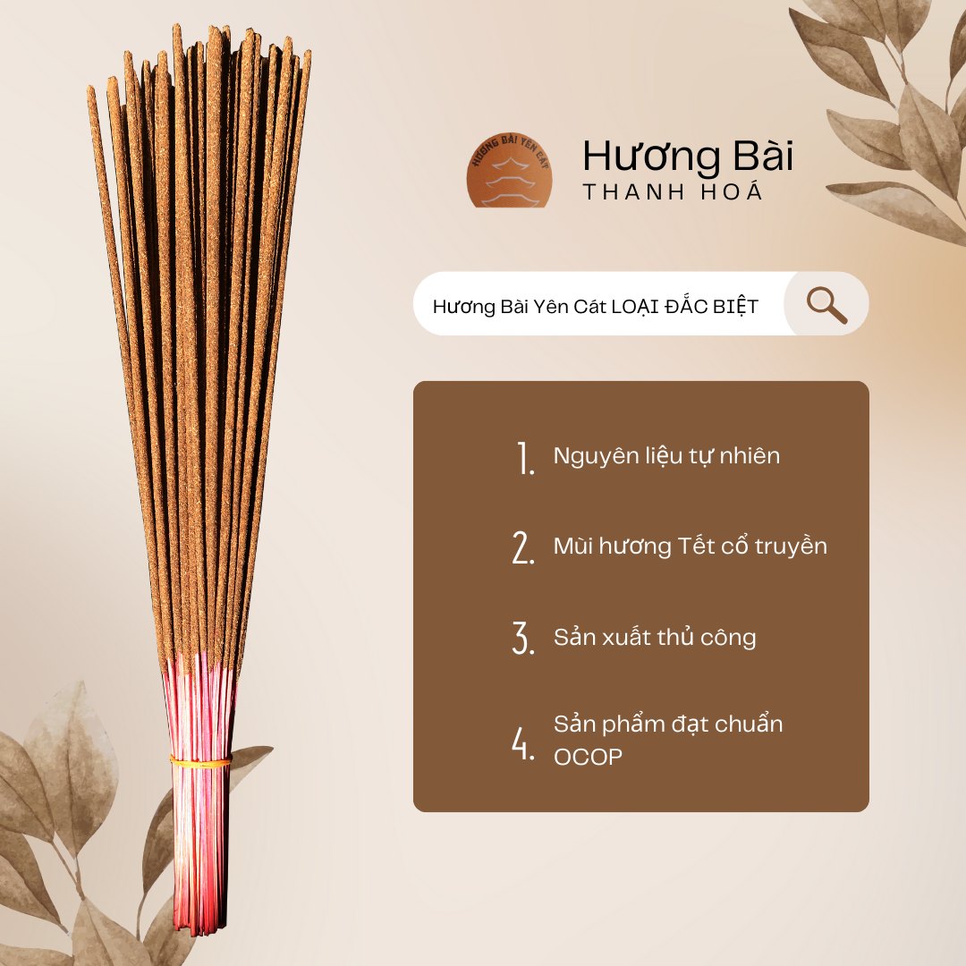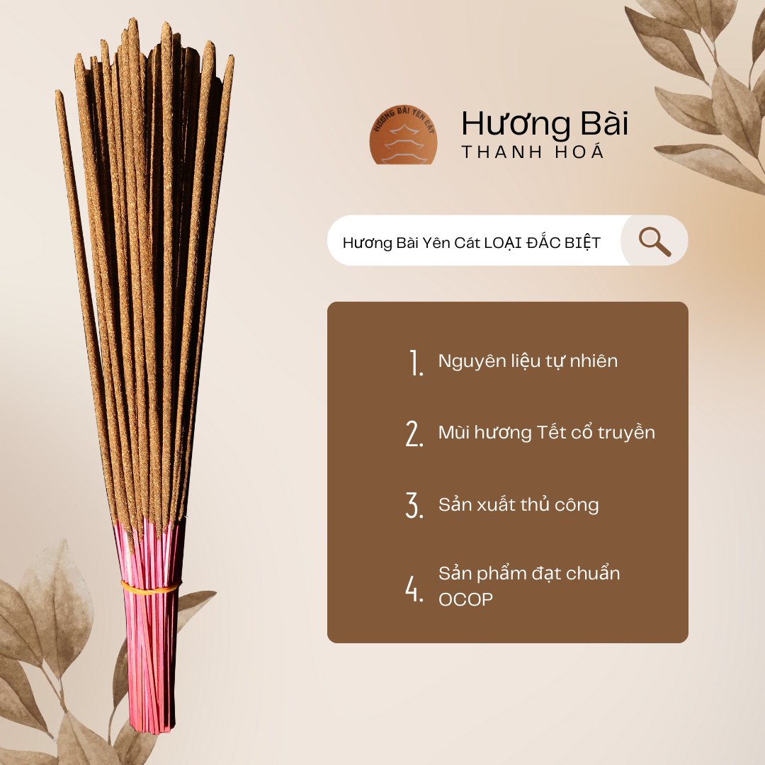Hương Bài Yên Cát LOẠI ĐẶC BIỆT là sản phẩm gia truyền nhiều đời tại Làng Trầu (kp Cát Tiến), tt Yên Cát, huyện Như Xuân, Thanh Hóa.